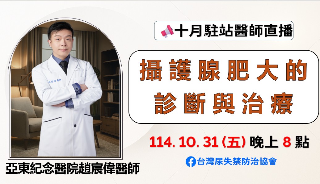 - 地點:線上直播(請先上「台灣尿禁防治協會」FB,預約參加線上直播)