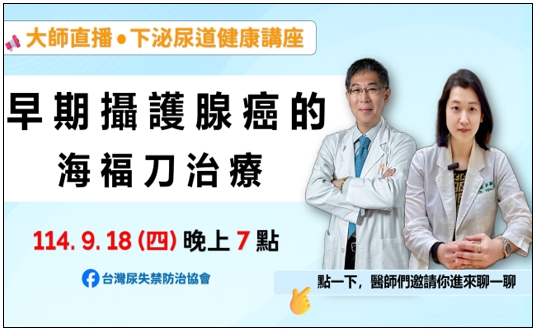 - 地點:線上直播(請先上「台灣尿禁防治協會」FB,預約參加線上直播)