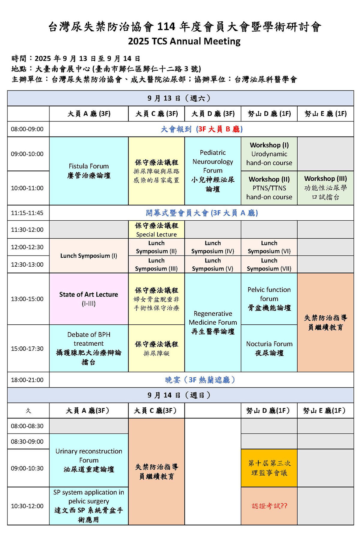 各位會員:大家好 本會 114 年度會員大會暨學術研討會,預定於 114 年 9 月 13 日至 14 日(星期六、日),假大臺南會展中心舉行,敬請各位會員預留時間踴躍參與,共襄盛舉,詳細議程及報名資訊將另行公告,敬請持續關注本會通知,謝謝您。
